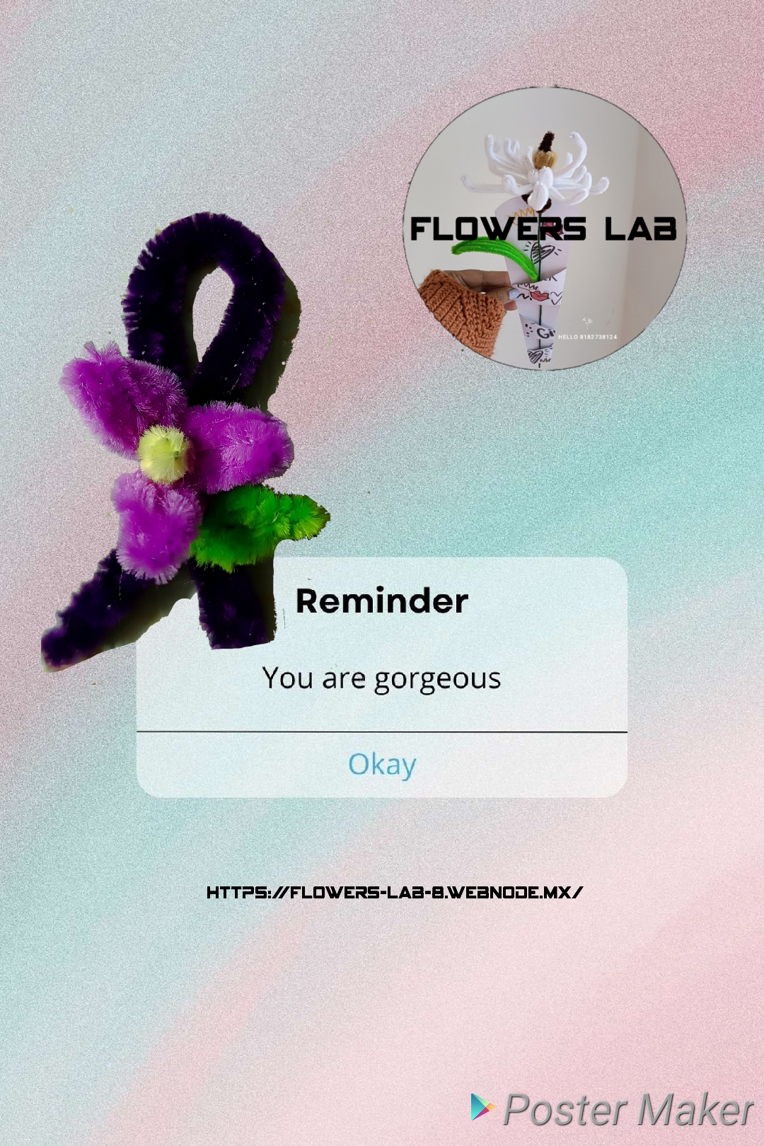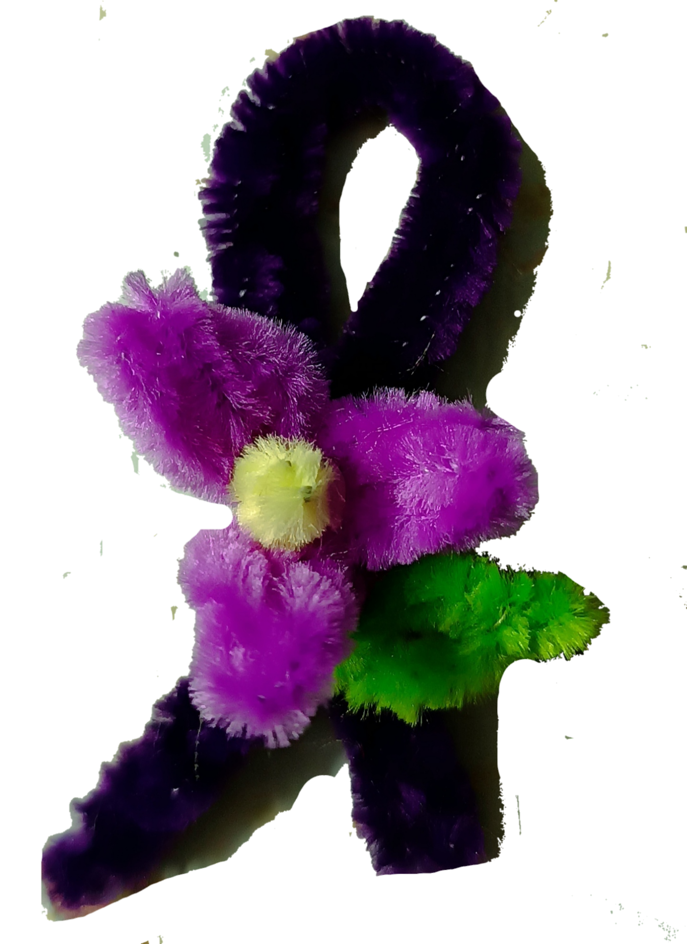 Distintivo para el dia de la MUJER. Simulación laxo de liston morado y tradescantia pallida.